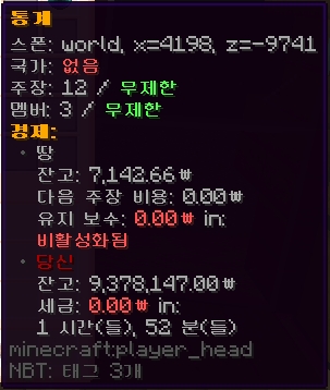 [/lands claim], [/마을 확장] 명령어를 사용하면 플레이어의 닉네임과 동일한 이름의 마을이 서있는 청크에 생성됩니다.